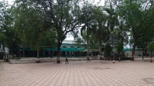 The courtyard in the front consists of two large water tanks. The entrance resembles a little mosque with a pointed archway and two towers.
