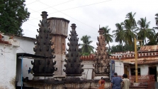 Banashankari Temple, said to be built by the Chalukyas of Kalyan in the 7th century, is located in proximity of Badami. As per the Skanda Purana and Padma Purana, the main deity of the temple, who killed a demon named Durgamasur at Banashankari, is an incarnation of Devi Parvati, the kuladevi of the Chalukyas. In Banashankari Temple, the idol of the goddess carved out of a black stone is seen seated on a lion with the demon crushed under her foot. The devi can be seen carrying a trishul, a ghanta, a kamaalpatra, a damaruga, a khadg-kheta and Veda scripts in her eight hands.