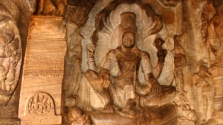 Cave Temple 2 is devoted to Lord Vishnu, who has been depicted in his Varaha and Trivikrama incarnations here. Scenes of Puranas showing Vishnu and his Garuda avatar can be seen at the ceiling of this temple. The 100 ft deep Cave Temple 3 has images of Lord Vishnu in the forms of Trivikrama and Narasimha. Additionally, tourists can see the image of the wedding ceremony of Lord Shiva and Goddess Parvati in frescoes. Cave Temple 4, a tribute to Jainism, has an image of Mahavira in a sitting position, along with a miniature Tirthankara Parshvanatha figure crafted within the cave.