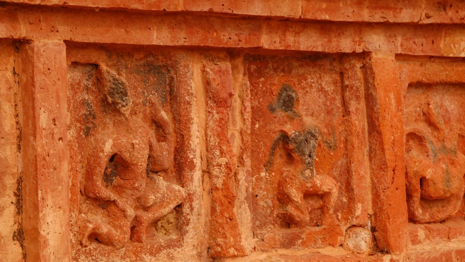 A view of the beautiful carvings on the walls at the Vikramshila University