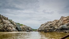 Hogenakkal is a small village on the Cauvery river in the Dharmapuri district of Tamil Nadu. It gets its name from the Kannada word, 'Hoge' meaning ‘Smoke’ and 'kal' meaning ‘rocks’ and hence the term Hogenakkal meaning ‘Smoky Rocks’. A smoky appearance on the rock is created by the water plummeting forcefully. This riverside village is located approximately 150 kilometers from the busy metropolitan city, Bengaluru and is on the borders of the two states of Tamil Nadu and Karnataka.
