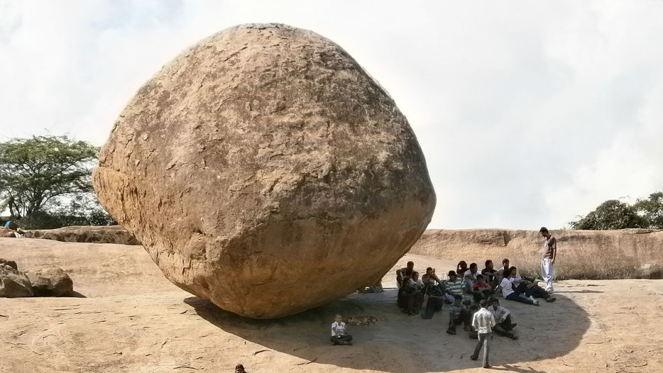 Krishnas butterball balancing giant rock Mahabalipuram