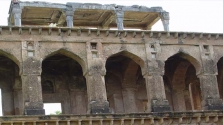 The main building is shaped like a huge arched gateway and topped by a Takht (Throne) and a Chhatri (Umbrella). Eight pillars support the decorated chhatri. Steps from the pillars lead down to the well.