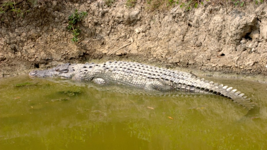 Sundarbans photos, Bhagabatpur Crocodile Project - A crocodile rests on the banks - Nativeplanet