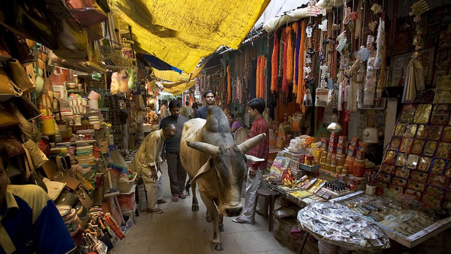Varanasi photos, Holy cow roaming freely in Market