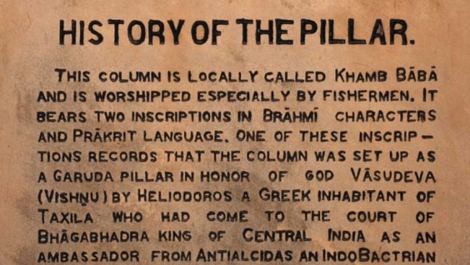 Vidisha photos, Khamba Baba (Heliodorus pillar) - The Inscription - Nativeplanet